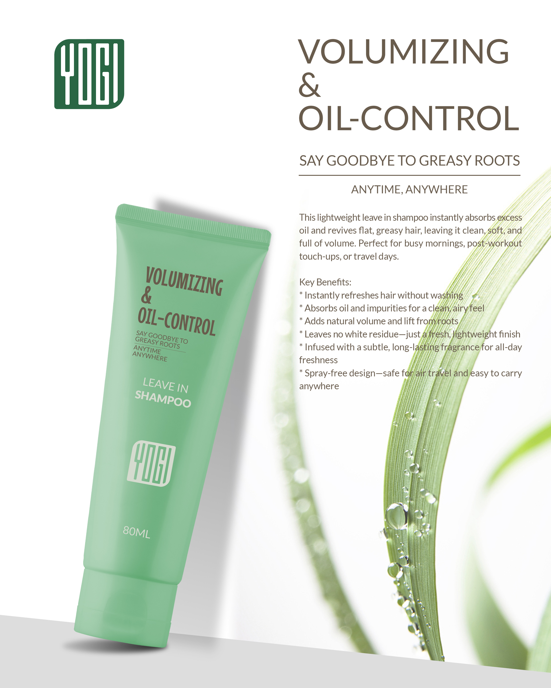 In today’s fast-paced lifestyle, not every day is a wash day—but that doesn’t mean your hair can’t look fresh, clean, and full of life. At YOGI, we make it possible to customize your own leave-in volumizing leave in shampoo, designed to instantly refresh the scalp, absorb excess oil, and bring effortless bounce back to your hair—anytime, anywhere.