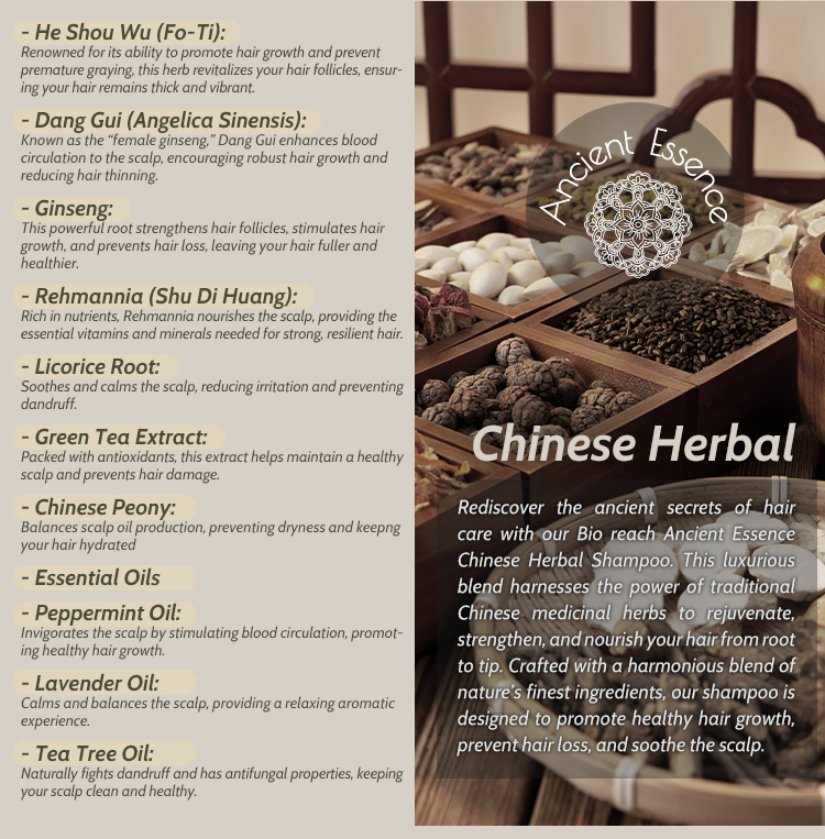 Das chinesische Kräutershampoo von Bio Reach wird in 18 Prozessen extrahiert und über 168 Stunden sorgfältig verarbeitet, um sicherzustellen, dass jeder Zentimeter Ihrer Kopfhaut Pflege auf königlichem Niveau erhält.