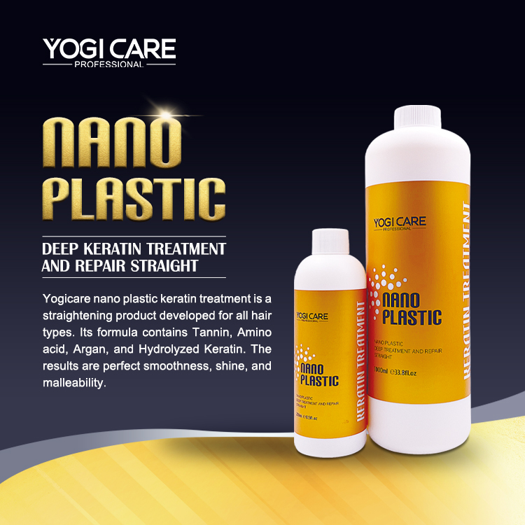 Die Nano-Kunststoff-Keratin-Behandlung von Yogicare ist ein Glättungsprodukt, das für alle Haartypen entwickelt wurde. Seine Formel enthält Tannin, Aminosäure, Argan und hydrolysiertes Keratin.