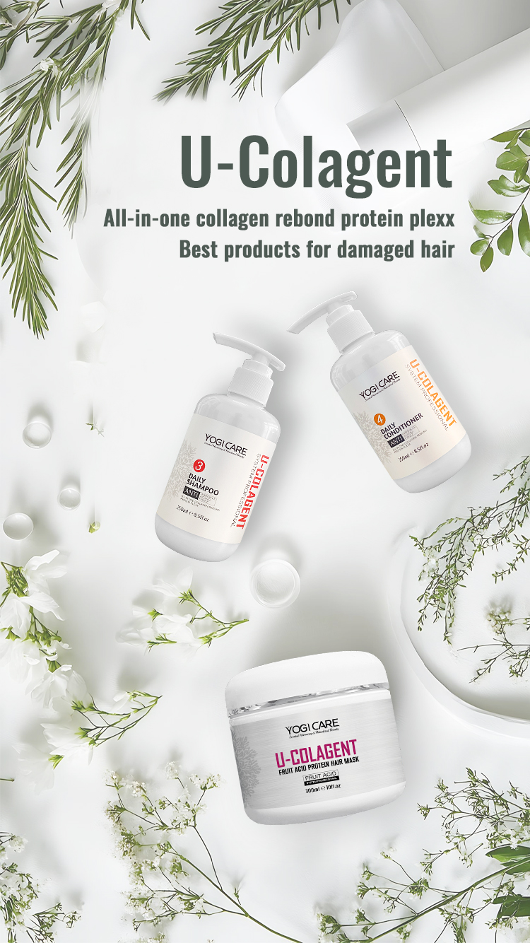 Lorsque vos cheveux sont secs, abîmés ou traités chimiquement, ils ont besoin de plus qu'un simple soin : ils ont besoin d'un système de réparation complet. Découvrez la gamme de soins capillaires YOGI CARE U-Collagen, un trio sans sulfate comprenant un shampooing, un après-shampooing et un masque nourrissants, conçus pour restaurer force, élasticité et brillance des racines aux pointes.