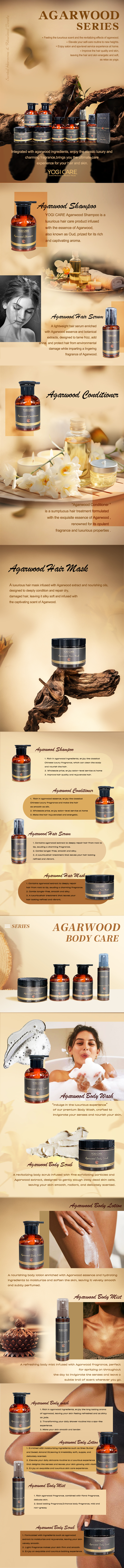 अगरवुड सामग्री के साथ एकीकृत, क्लासिक विलासिता और आकर्षक खुशबू का आनंद लें, आपके बालों और त्वचा के लिए सर्वोत्तम देखभाल का अनुभव प्रदान करता है।