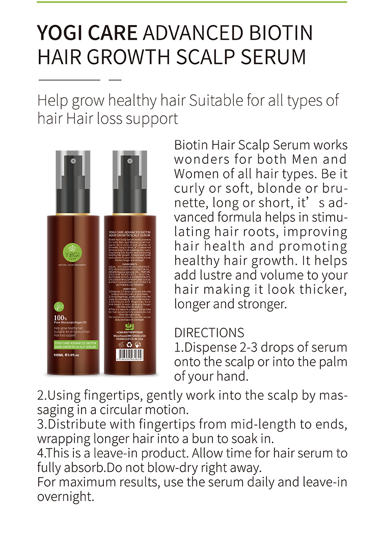 Step4: Dispense 2-3 drops of serum onto the scalp or into the palm.Using fingertips,gently work into the scalp by massaging in a circular motion.