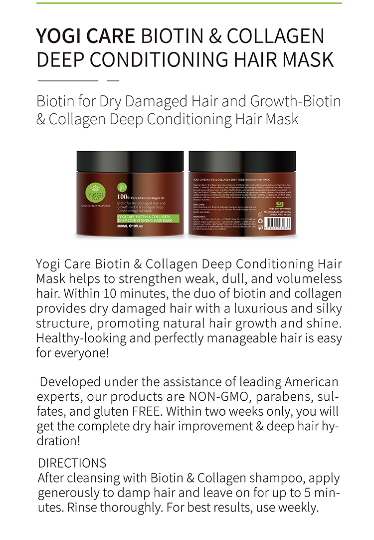 Step3: After cleansing with shampoo and conditioner,apply generously to damp hair and leave on up to 5min.Rinse thoroughly.