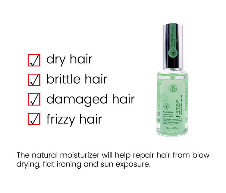 Macadamia hair serum,hair & body hair serum,nourishing hair essence treatment from Yogi care.
