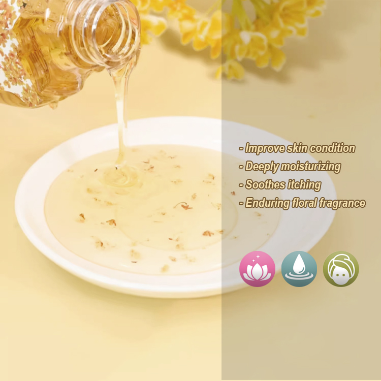 1. Улучшает состояние кожи 2. Глубоко увлажняет 3. Успокаивает зуд 4. Стойкий цветочный аромат