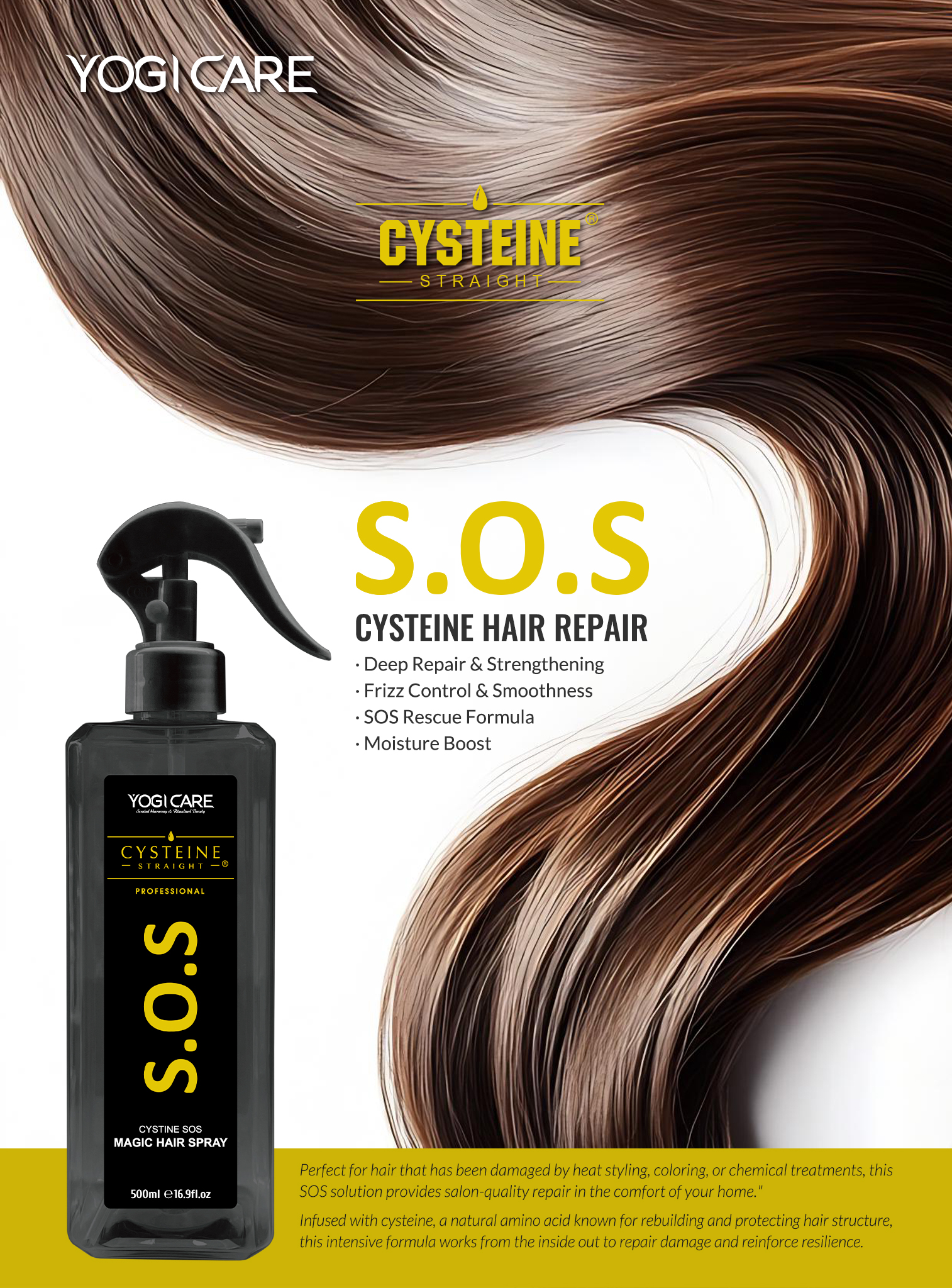 ✨ Mang lại sức sống cho mái tóc của bạn—mượt mà, chắc khỏe và rạng rỡ—với Xịt phục hồi tóc YOGI CARE SOS Cysteine.