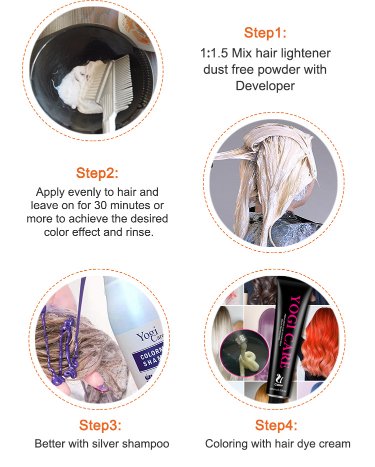 Yogi Care Bleach Powder is a powder lightener with the unrivaled performance that's able to lift both natural and colored hair up to 9 levels. What it does: It offers perfect neutralization, thanks to its anti-yellow agents which directly target the hair pigment that causes those warm yellow undertones. What else you need to know: It has a flexible mixing 1:1 ratio , which means you can mix it to the consistency that works best for you and should be mixed with Yogi Care Developer for optimum bleaching and hair care.